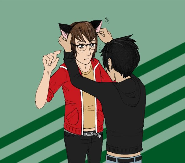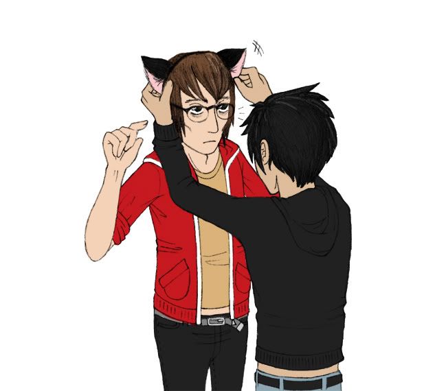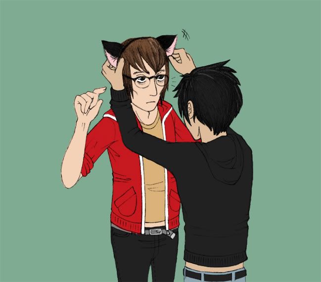 This scene is toward the end of the story, and just, look at them. The strips of skin where their t-shirts have ridden up, and Mikey looks so taken-aback as Pete hands over the cat ears. What I love most about this is the colour, Mikey's wearing something bright, his red hoodie standing out as he's given a gift from someone who's become a friend. It's also a sign that things are getting better for Mikey, he's left the dark times and can finally take a step from the shadows. Then there's Pete, who's not one of the main characters in the story but he is an important one, and I was thrilled he got his own moment to shine.